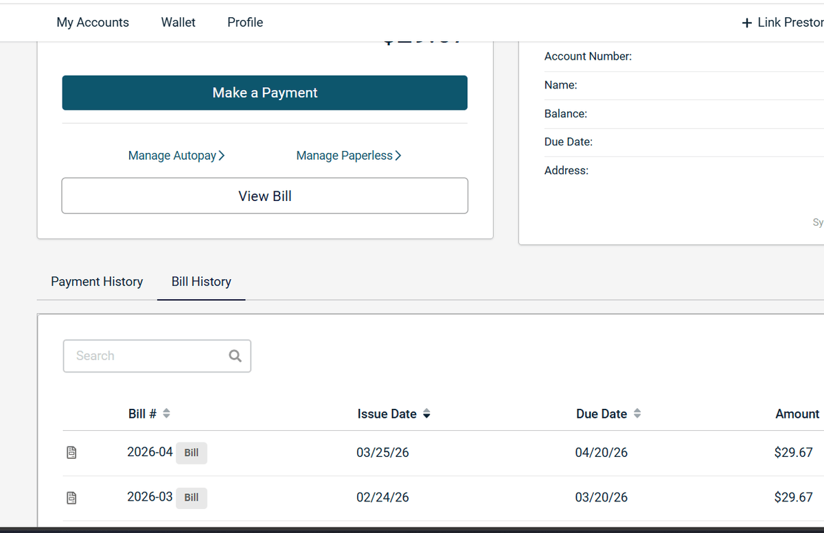 -Selecting the little icon next to the month will download the associated bill with that month.